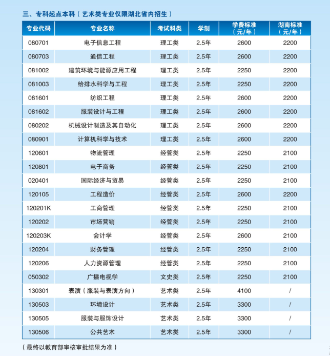 三、专科起点本科(艺术类专业仅限湖北省内招生)